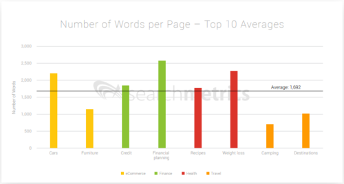 A study from SearchMetrics shared that 2019’s average word count was around 1,692 words—although there’s still some variance from industry to industry. You’d better believe that means word counts will continue to rise in 2020.