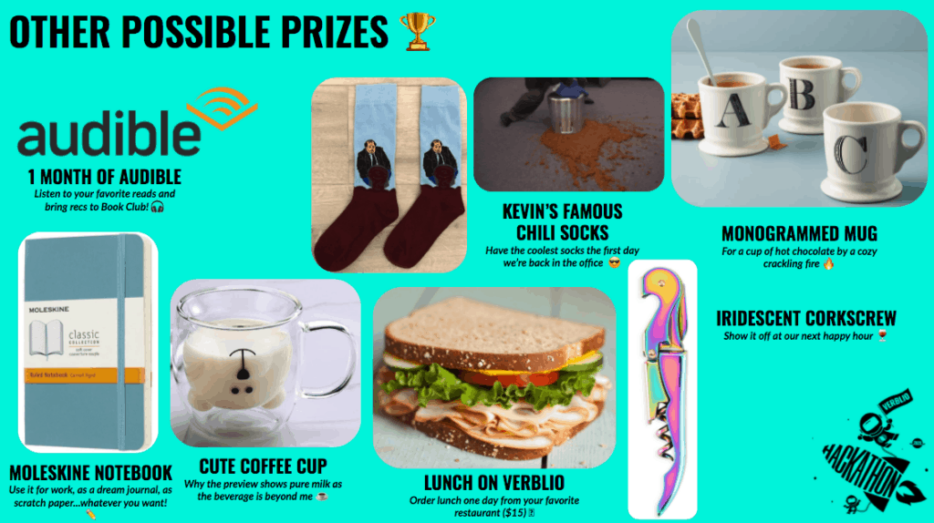 Solve a known Verblio business/user problem using technology. Demo the solution at the end of the week. Be judged.