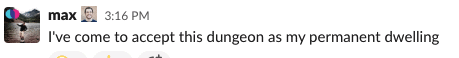 Our daily slack team challenge mandates that we upload screenshots posing with the things we love: