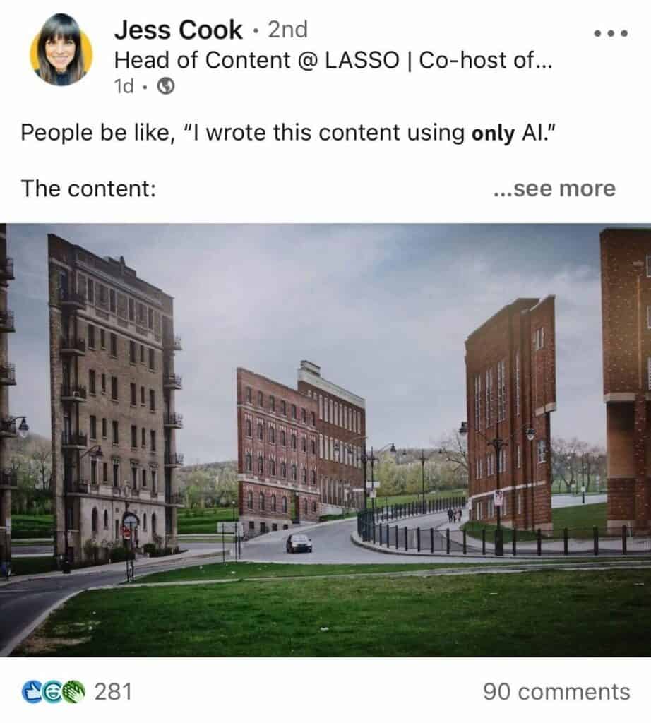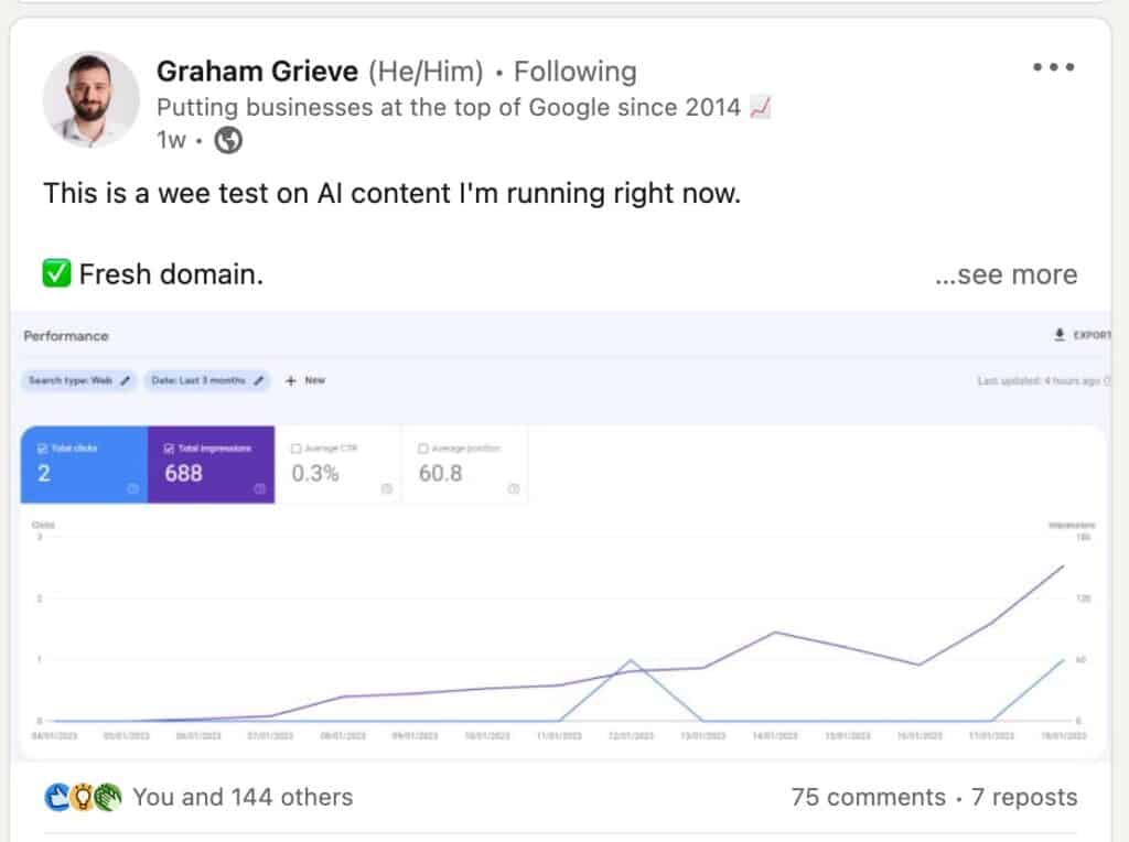Ross also points out that while AI content can rank, it rarely converts. In his words “[AI] case studies will rarely show conversions, as this content will convert horribly due to poor quality.”