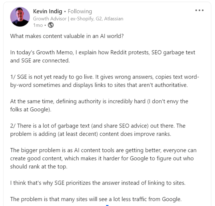 Kevin is willing to make some bold statements about SGE and the future of search in an AI-powered world:
