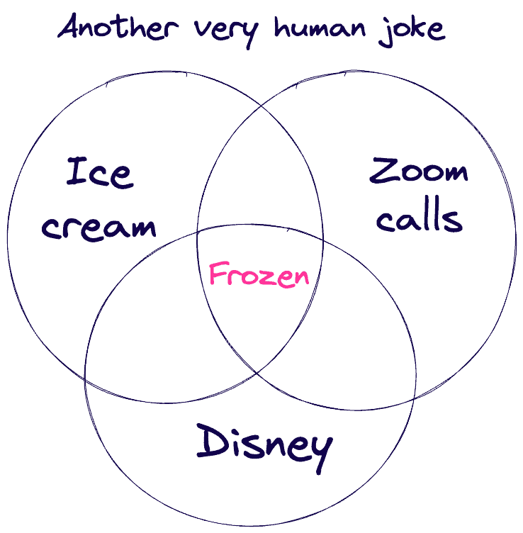 Oof. That’s almost funny? Given that “frozen” is the connection between the two subjects, though, I was expecting that to be in the punchline, like “What did the ice cream and the glitchy Zoom call have in common?”
