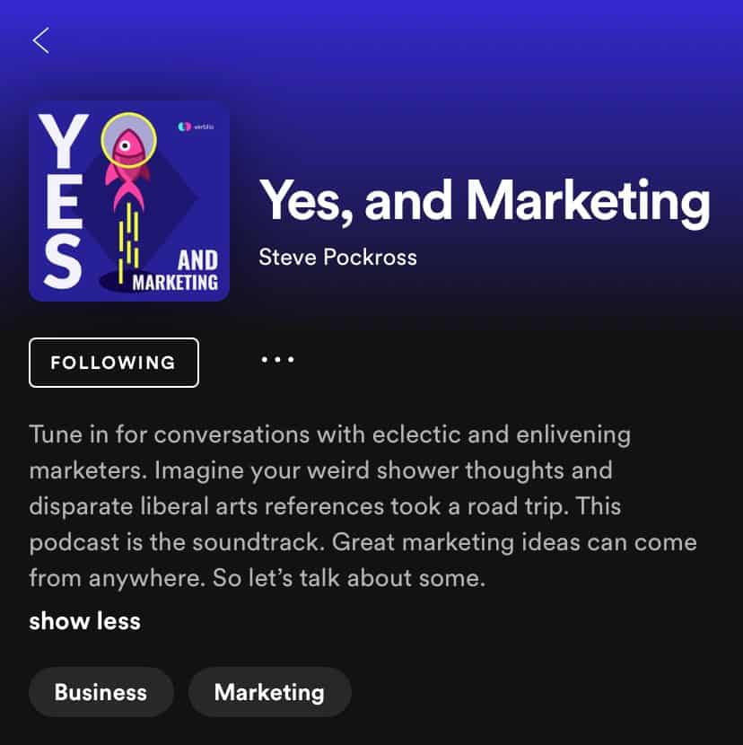 We’re excited about this new phase of the show, and we hope you’ll join us! Search Yes and Marketing wherever you get your podcasts and tune in for new episodes every Wednesday.