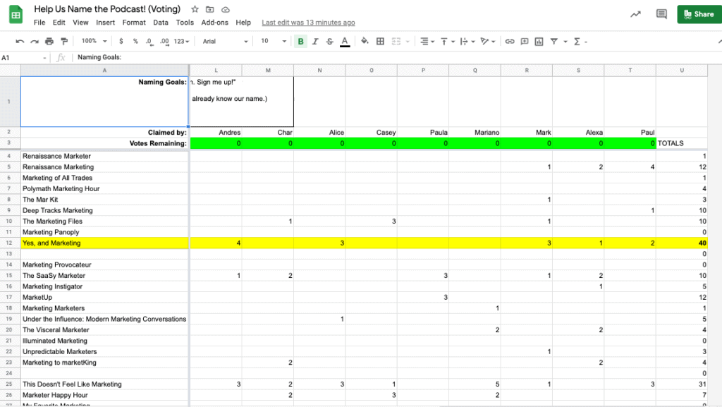Not to brag, but Yes, and Marketing is the perfect name for the show for a number of reasons.