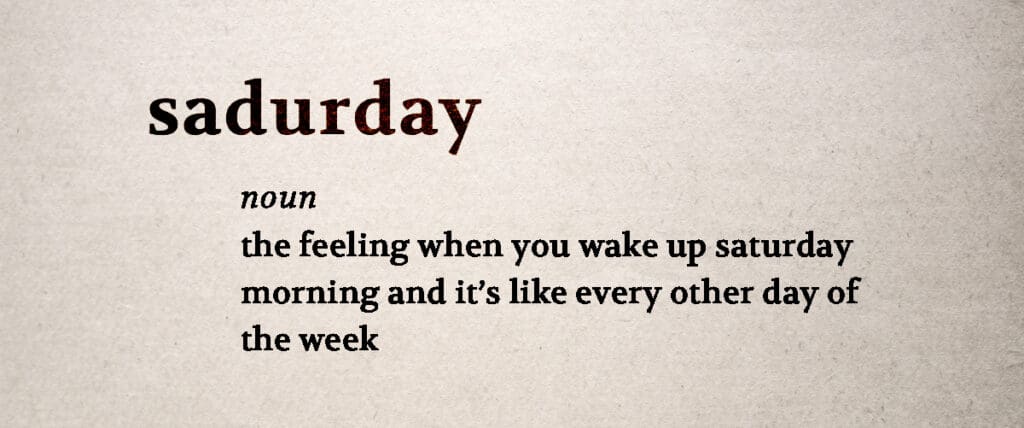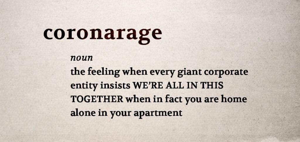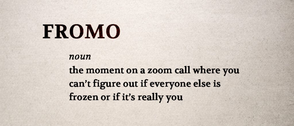 There was an SNL sketch in the 80s about “sniglets” – words that ought to be words but aren’t. (Sniglet is itself a sniglet.) We’ve found that naming things can be cathartic. So, we created a Slack channel dedicated to COVID-themed words that should exist already. There was lots of discussion. The below collection represents the team’s favorites.